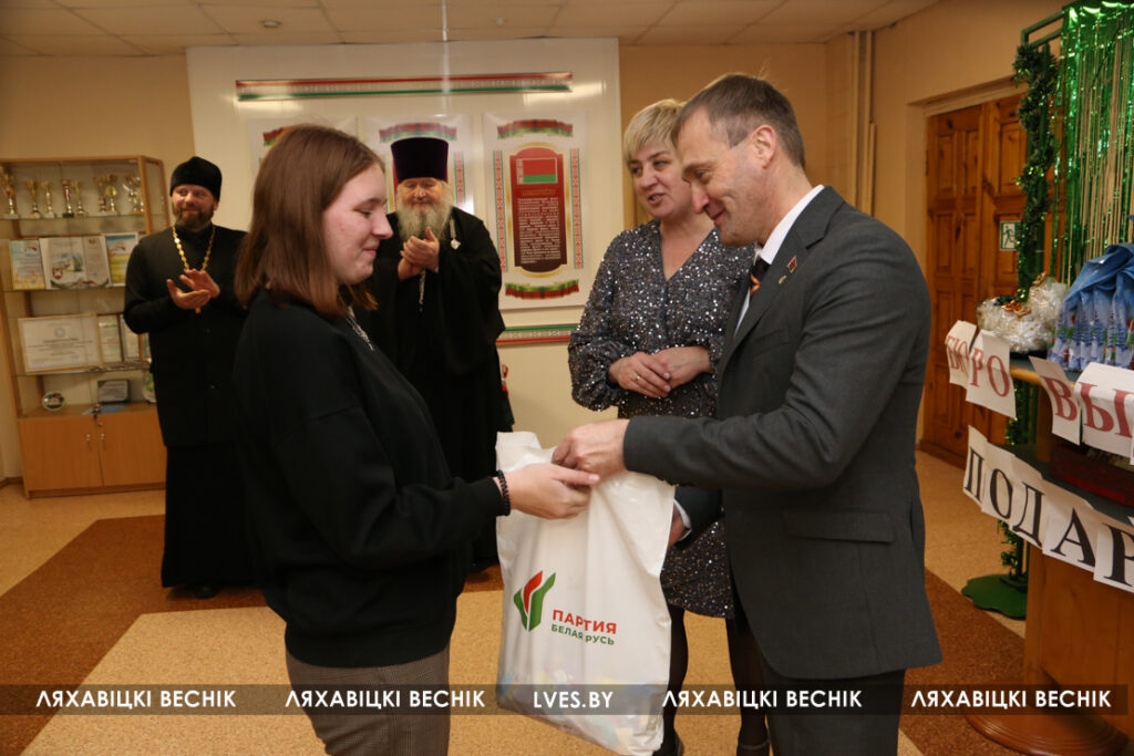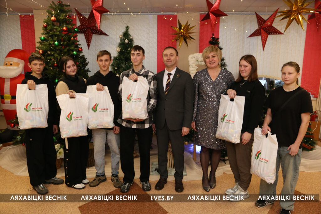 - Партия “Белая Русь” активно участвует в благотворительной акции “Наши дети”. Пускай подарки порадуют юношей и девушек, у которых нелёгкая судьба, принесут им положительные эмоции. Уверен, что таким ребятам особенно необходимы внимание и забота, ощущение праздника и подарки. Важно, чтобы дети, независимо от возраста, ощущали заботу и свою востребованность, — отметил председатель районного отделения БП “Белая Русь” Олег Третьяк.