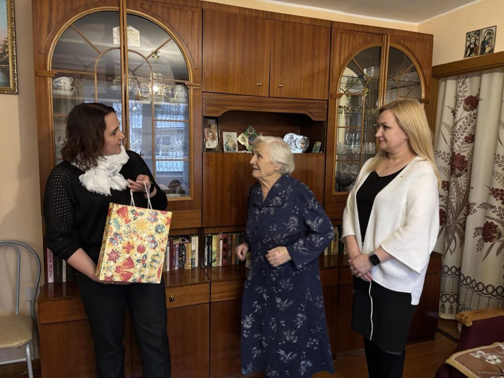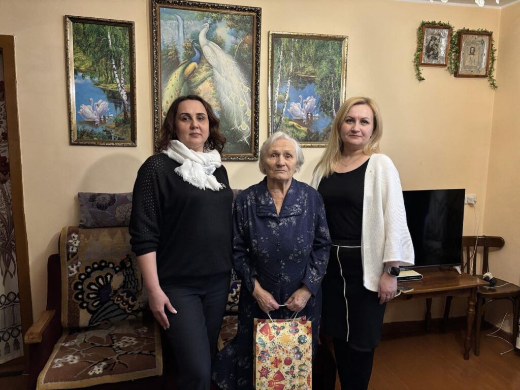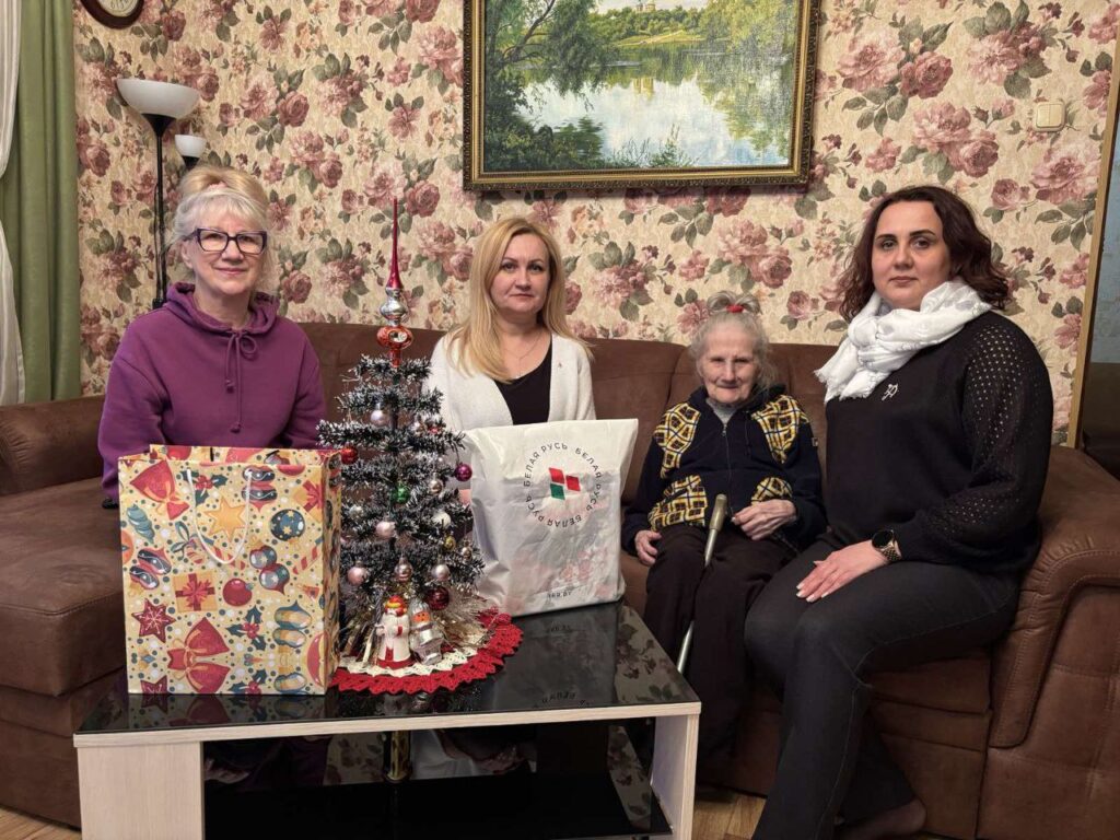 А 100-летняя ляховичанка Нина Семёновна Демидова принимала от РОО «Белая Русь» поздравления с наступающим Новым годом и Рождеством.