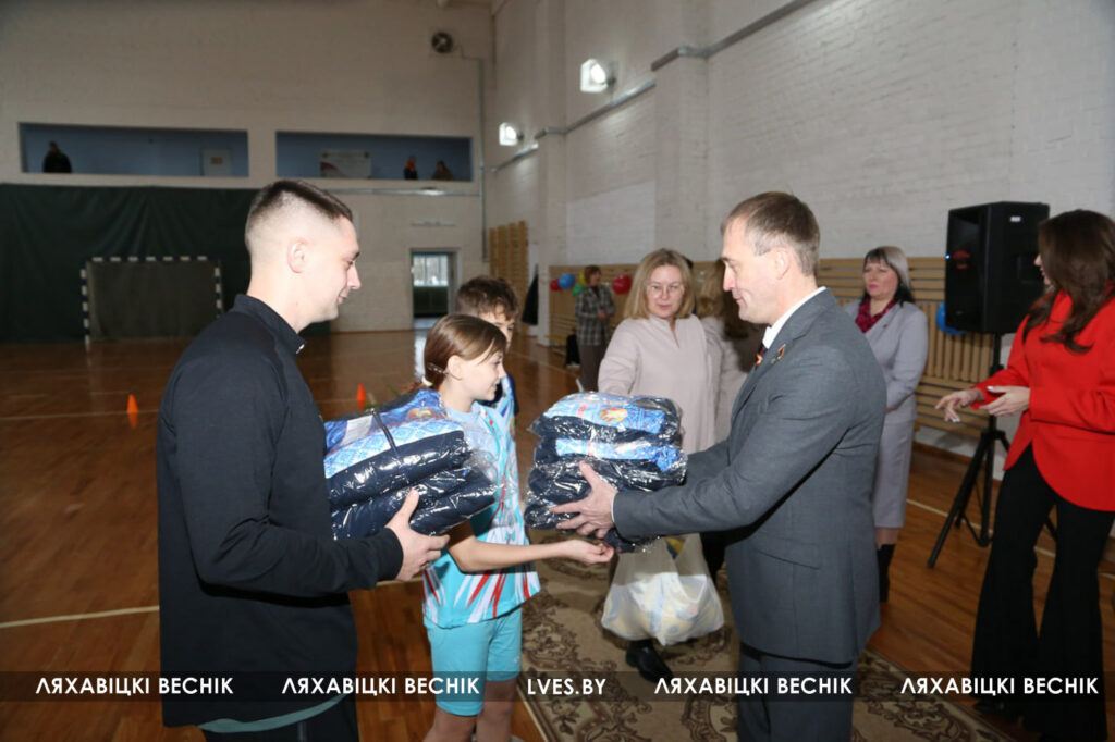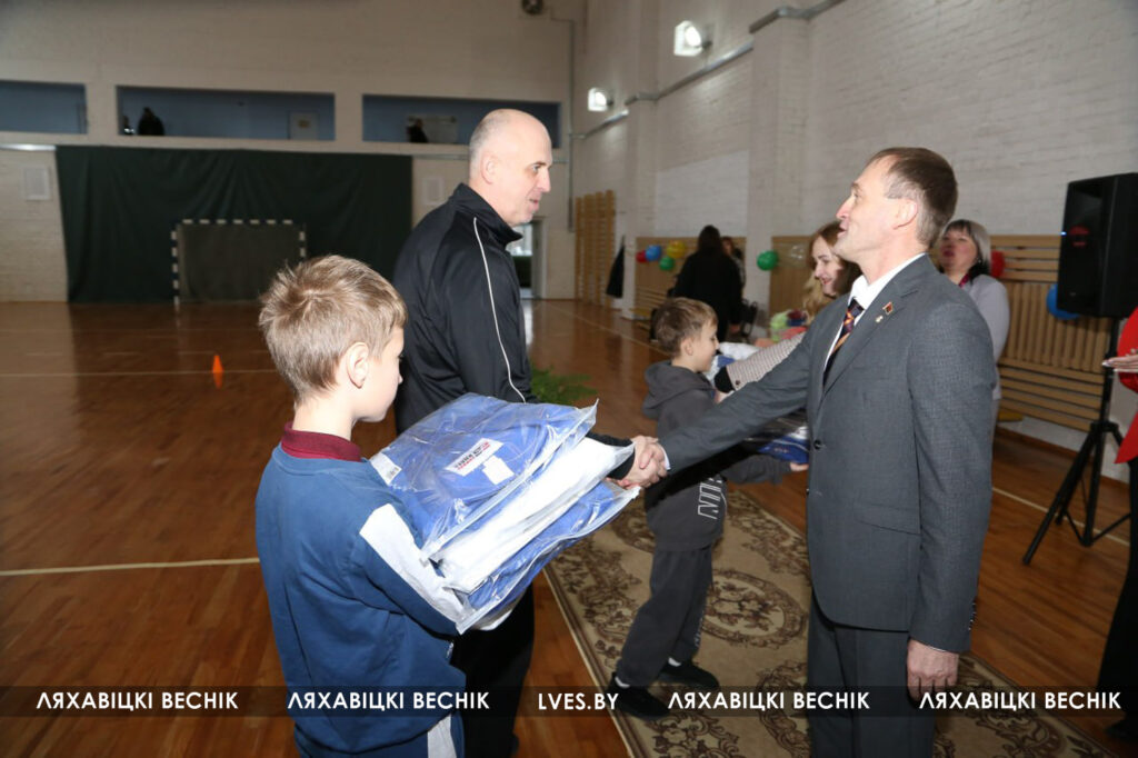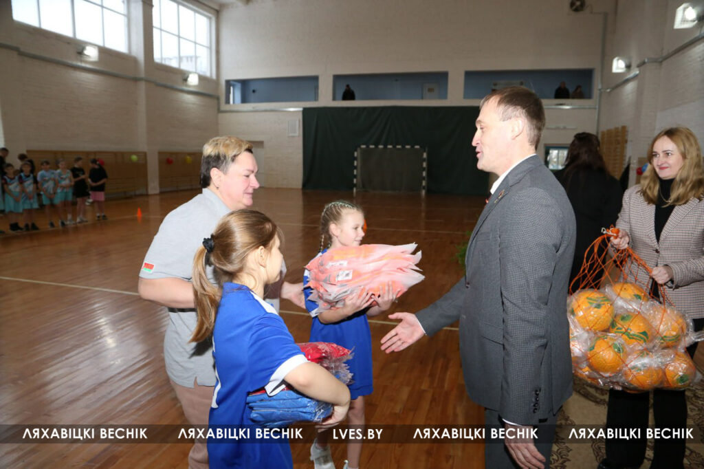 Олег Третьяк поздравил юных спортсменов с наступающим Новым годом, пожелал им веры в свои силы и ярких побед. По доброй традиции воспитанники ДЮСШ от райисполкома получили подарки: четырём отделениям — лёгкой атлетики, дзюдо, гандбола и футбола – вручены новая спортивная форма и спортинвентарь.