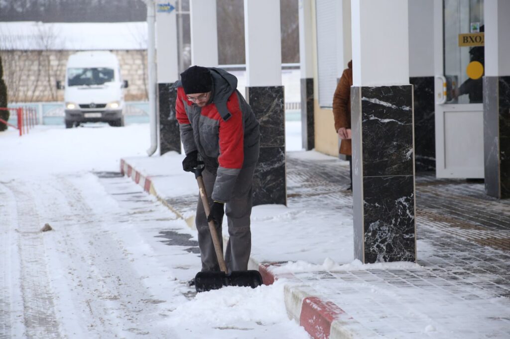 Снегоочистительный инвентарь взяли в руки работники предприятий и горожане.