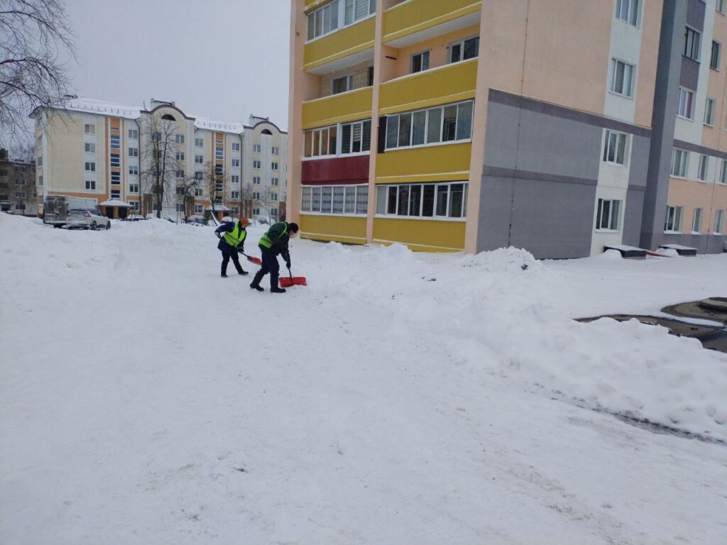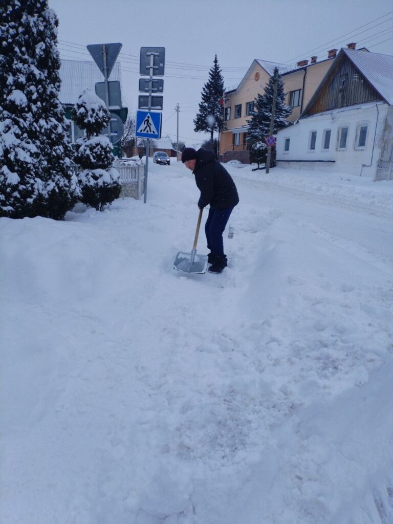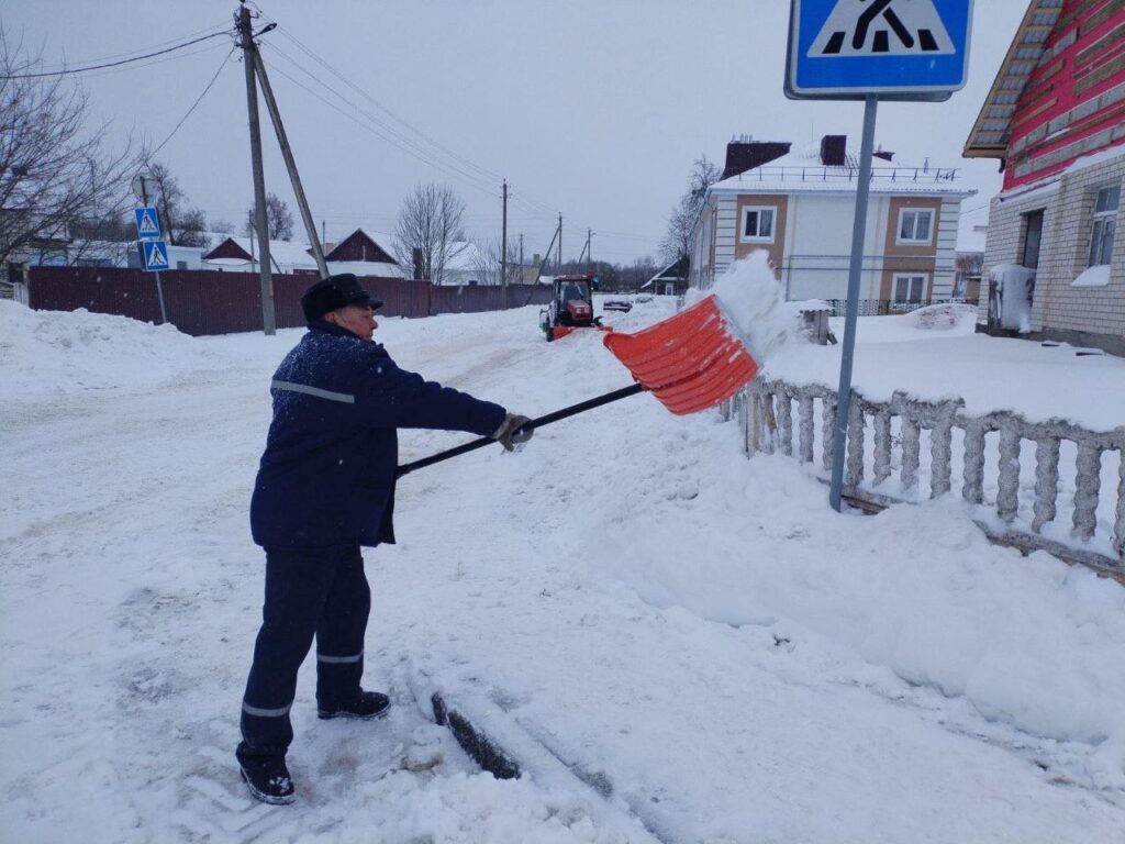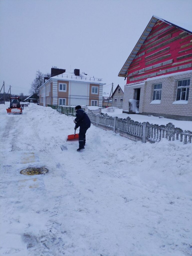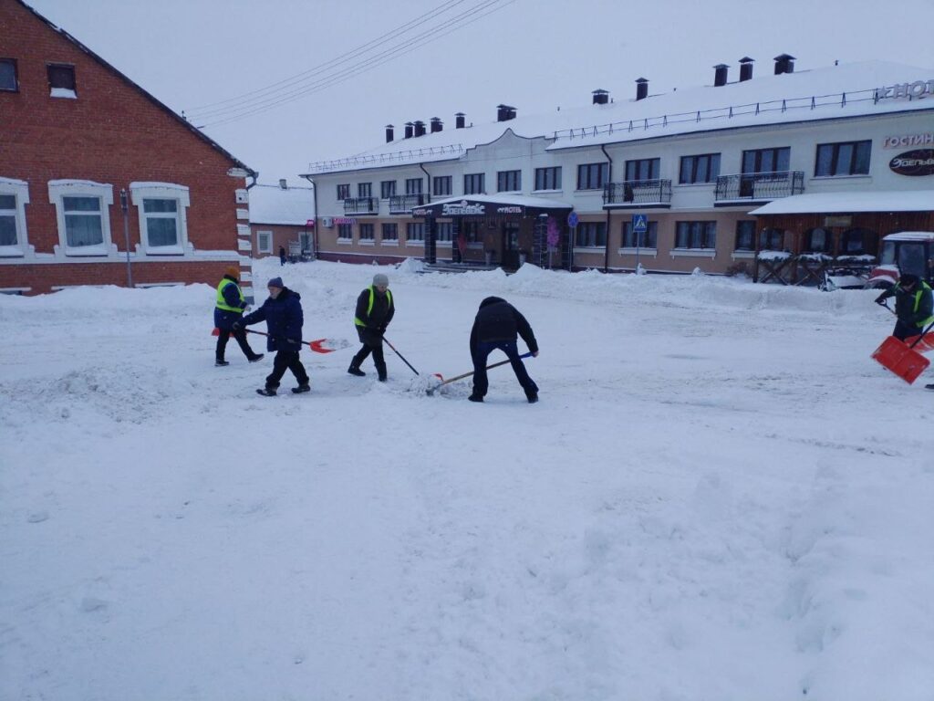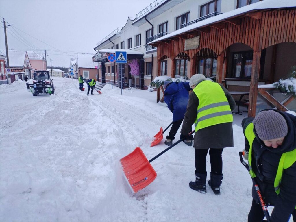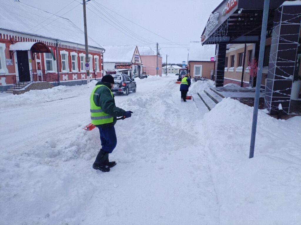 Субботним утром работники разных подразделений КУМПП ЖКХ «Ляховичское ЖКХ» вышли на расчистку снега на улицах и переулках райцентра