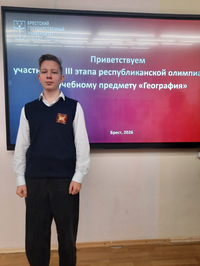 Учащийся гимназии Александр Яворчук награждён дипломом III степени по географии (педагог Наталья Сапега-Панько).