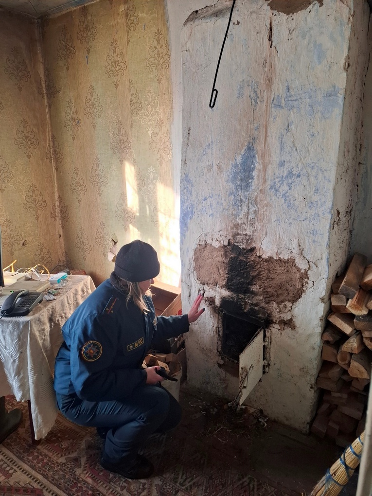 На пути встречались домовладения, в которые не представилось возможности попасть, однако специалисты службы МЧС прибудут туда в следующий раз. С жильцами тех домовладений, кто оказался дома, в первую очередь спасатели обратили внимание на источник тепла – печь. Специалисты осмотрели состояние дымохода в пределах чердачного помещения, провели визуальный осмотр целостности печи и напомнили, что предтопочный лист должен быть 50 на 70 см.