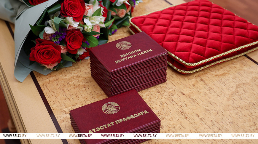 Президент Беларуси Александр Лукашенко вручил научным и научно-педагогическим работникам дипломы доктора наук и аттестаты профессора. Торжественная церемония состоялась во Дворце Независимости, передает корреспондент БЕЛТА.
