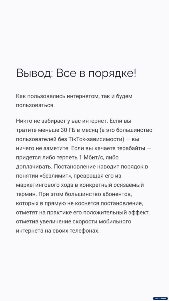 В сети бурно обсуждают постановление Минсвязи от 22 декабря 2025 года №38 об ограничении объема услуг передачи данных на безлимитных тарифах. В ведомстве развеяли мифы об отключении интернета
