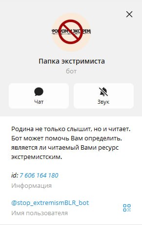 Всё, что для этого нужно, это всего лишь прислать ссылку в TG-бот «@stop_extremismBLR_bot» и он подготовит отчёт