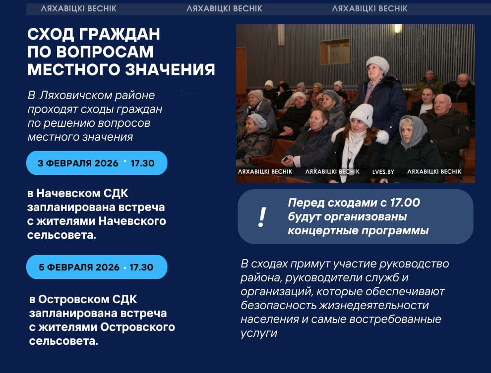 Навіны В Ляховичском районе пройдут сходы граждан по решению вопросов местного значения 30/01/2026 221 redakcyja