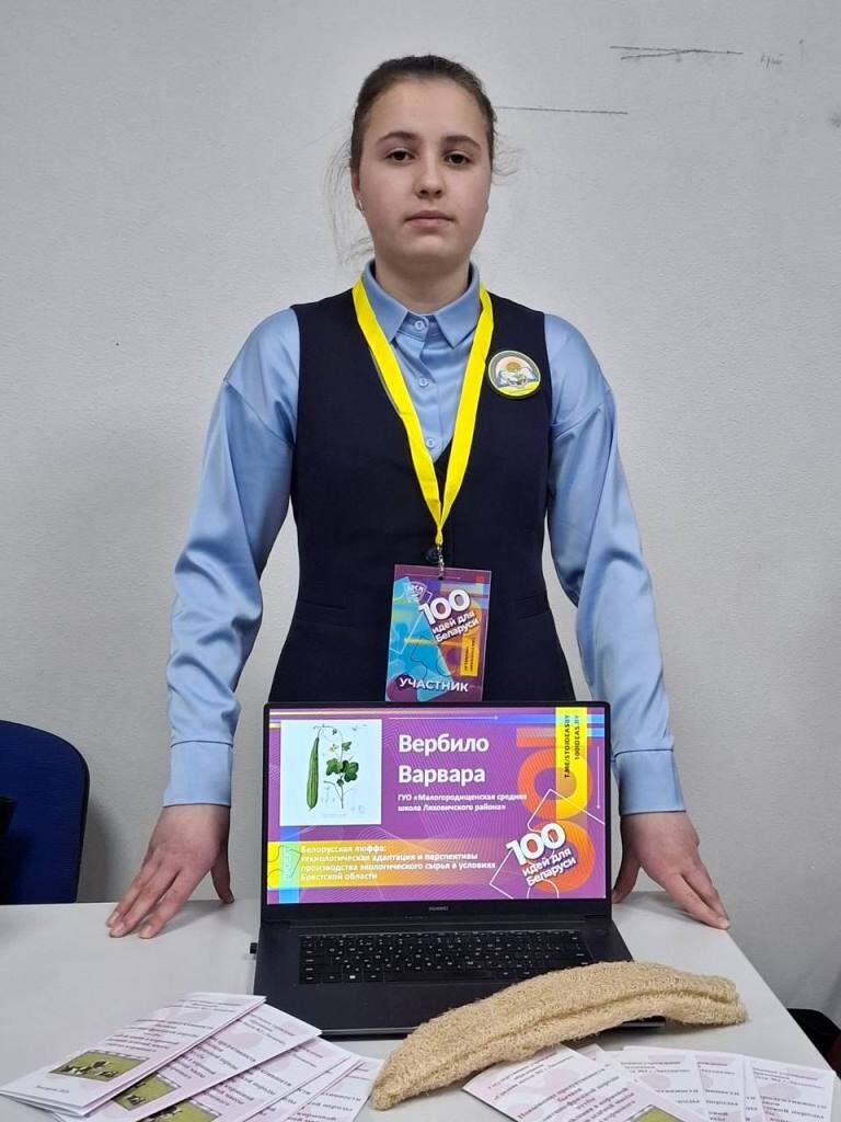 🔸“Белорусская люффа: технологическая адаптация и перспективы производства экологического сырья в условиях Брестской области” ( автор — Варвара Вербило, Малогородищенская СШ).