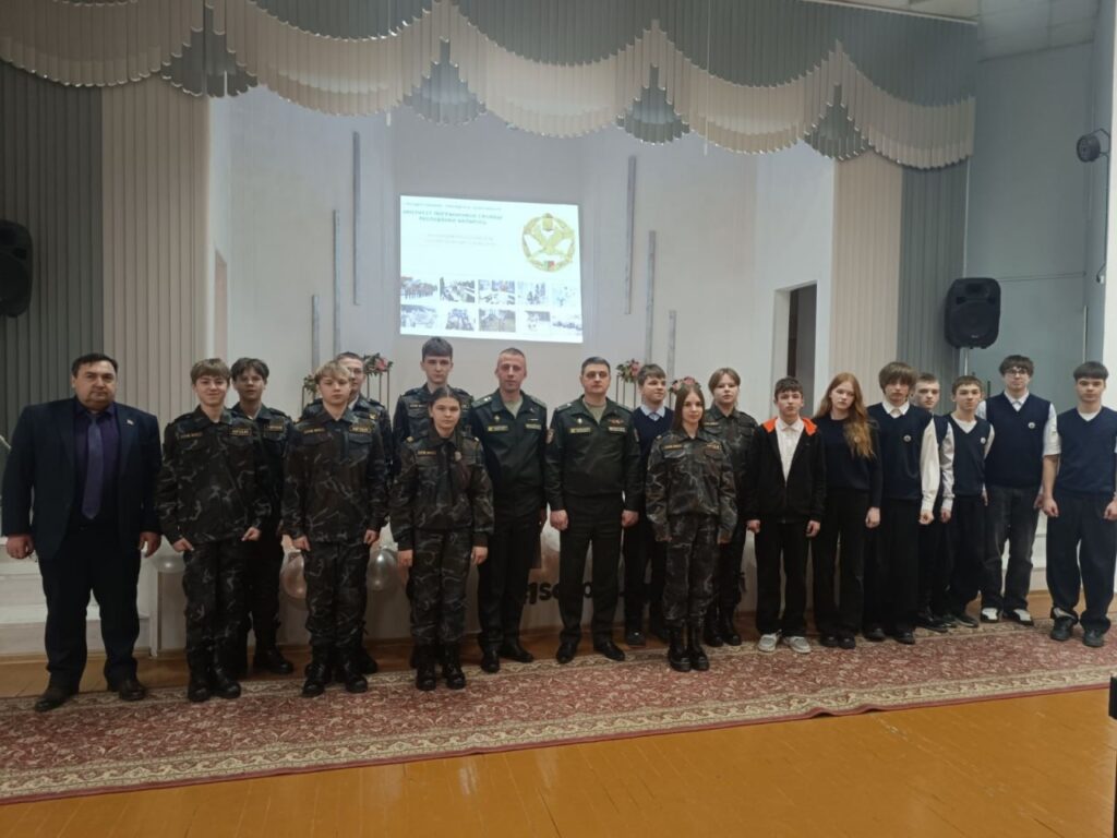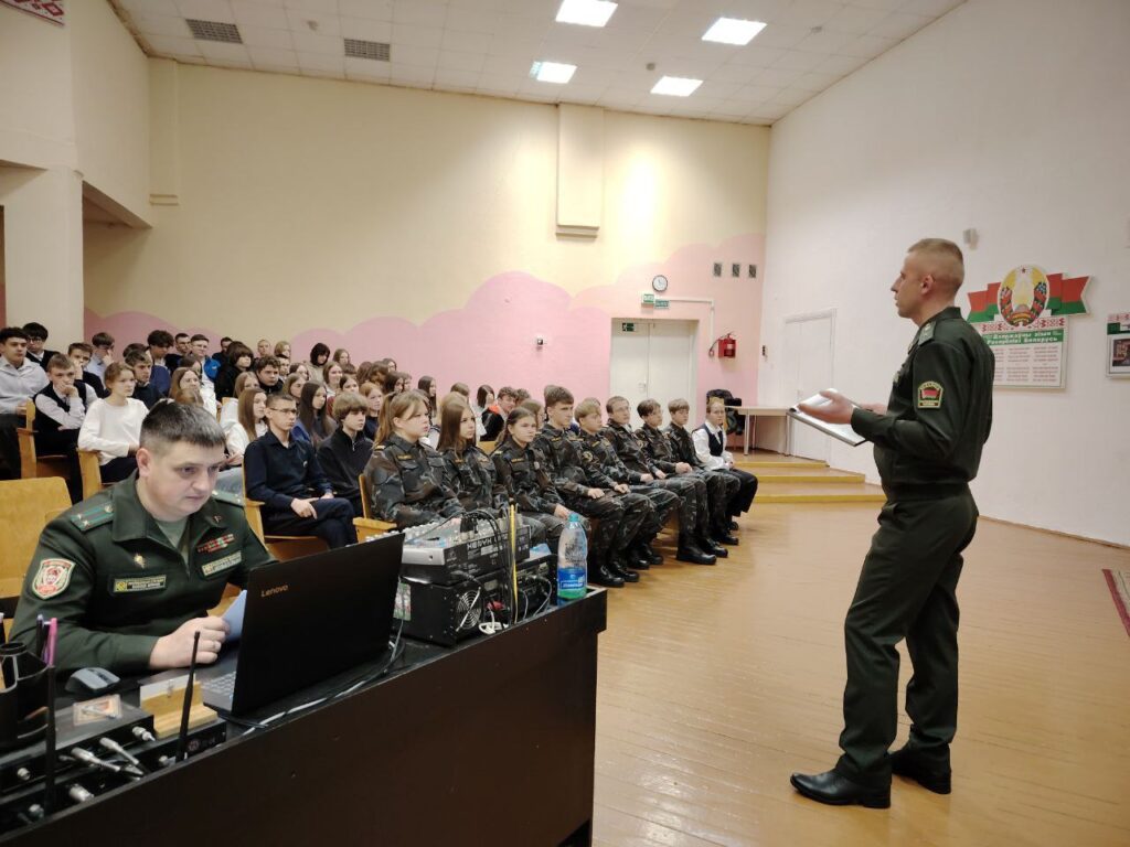 В рамках месячника военно-патриотического воспитания в СШ №1 состоялась встреча учащихся профильных групп военно-патриотической направленности, воспитанников ВПК «Фортеция» и учащихся старших классов с офицерами Пинского пограничного отряда
