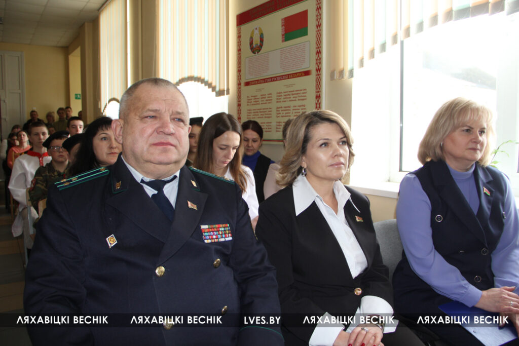 Прокурор Ляховичского района Игорь Полыко отметил важность выбора воспитанников военно-патриотического отряда, пожелал юным патриотам с честью нести высокое звание, хорошо учиться, знать историю родной страны и быть достойными наследниками Великой Победы.