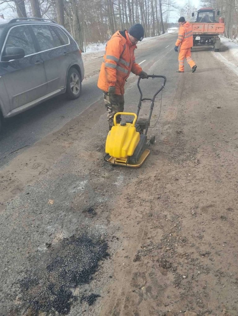 – Пры тэмпературы паветра вышэй за мінус 10 градусаў можна рабіць ямачны рамонт з прымяненнем так званага халоднага асфальту. Менавіта гэтым займаецца наша арганізацыя ў вёсцы Новыя Буды на аўтадарозе Ганчары – Куршынавічы – Ганцавічы. Што тычыцца іншых дарожных участкаў раёна, што ў зоне адказнасці ДРБУ-200, то ямачны рамонт будзе праводзіцца на працягу года па меры неабходнасці і згодна з данымі папярэдняга абследавання дарог. Акрамя таго, у абавязковым парадку прыкладна да сярэдзіны мая абнаўляем разметку дарог, дарожныя знакі, наводзім парадак на прыдарожных палосах, прыпынках грамадскага транспарту, пры неабходнасці падфарбоўваем-рамантуем павільёны, – расказвае начальнік ДРБУ-200 Максім Муха.