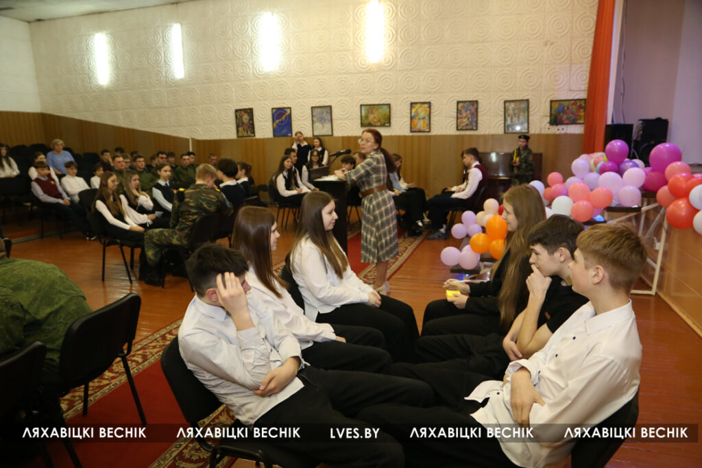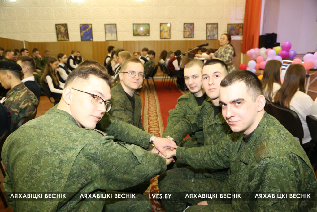 У гімназіі г. Ляхавічы да свята 23 Лютага прымеркавалі «Адзін дзень з воінскай часцю». У госці да гімназістаў і выхаванцаў ваенна-патрыятычнага клуба «Доблесць пакаленняў» прыбылі ваеннаслужачыя воінскай часці 29969, якія правялі для хлопчыкаў і дзяўчынак ўрок мужнасці, арганізавалі выставу сучаснага ўзбраення і экіпіроўкі. На сяброўскай ноце і ў атмасферы азарту прайшлі сустрэча па баскетболе, інтэлектуальная гульня «Што? Дзе? Калі?». Цудоўным завяршэннем сус-трэчы стаў салодкі стол «Маміны пірагі». Добры настрой і святочныя эмоцыі падарыла