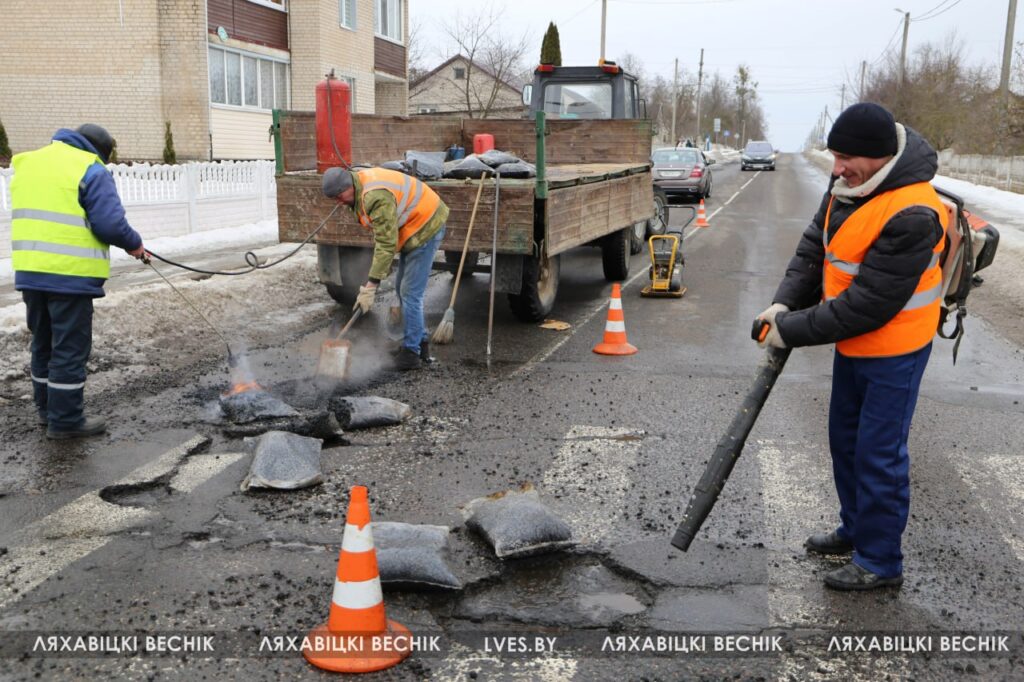 ФОТОФАКТ. Ляховичские коммунальники проводят ямочный ремонт на улицах райцентра