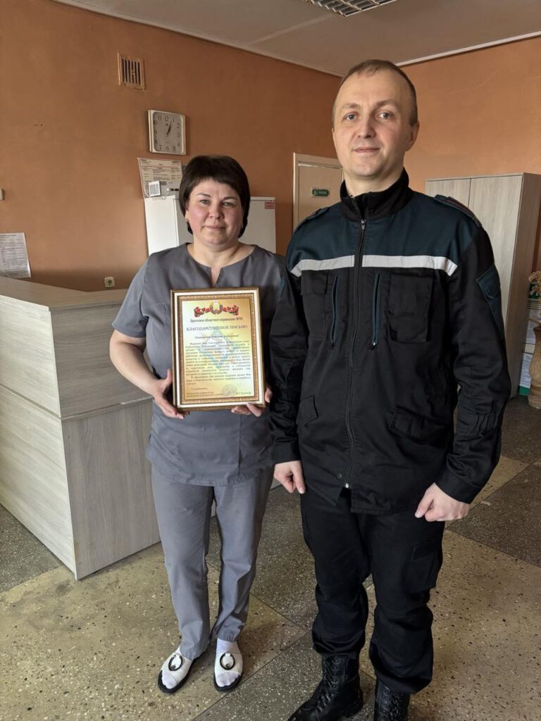 — Сегодня мы хотим сказать вам огромное спасибо, — обратился к мамам представитель МЧС. Ваша любовь, вера и забота — это именно та сила, которая помогает нашим молодым работникам преодолевать трудности, справляться с непростыми задачами и возвращаться домой к родным и близким. Вы — надежный тыл и источник вдохновения, – отметил Дмитрий Бертош и от имени начальника Брестского областного управления МЧС вручил Благодарственные письма Алесе Ивановне Тимошек и Татьяне Алексеевне Курилович.