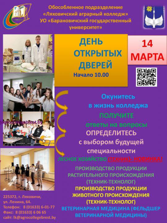 Адукацыя Навіны Ляховичский аграрный колледж приглашает на День открытых дверей 05/03/2026 237 redakcyja