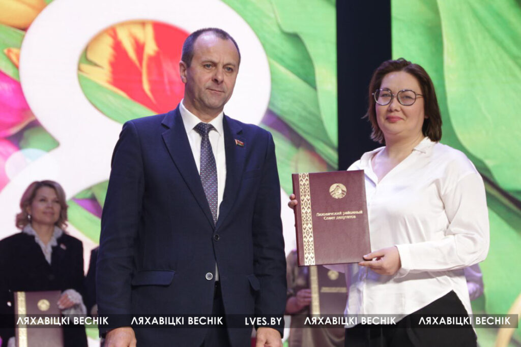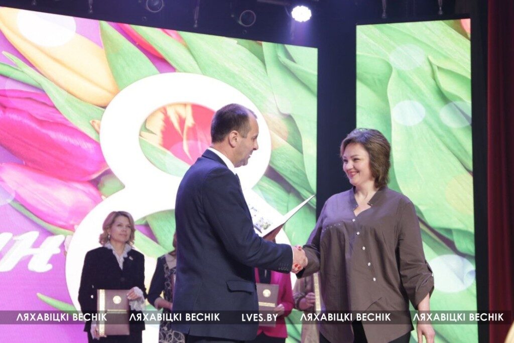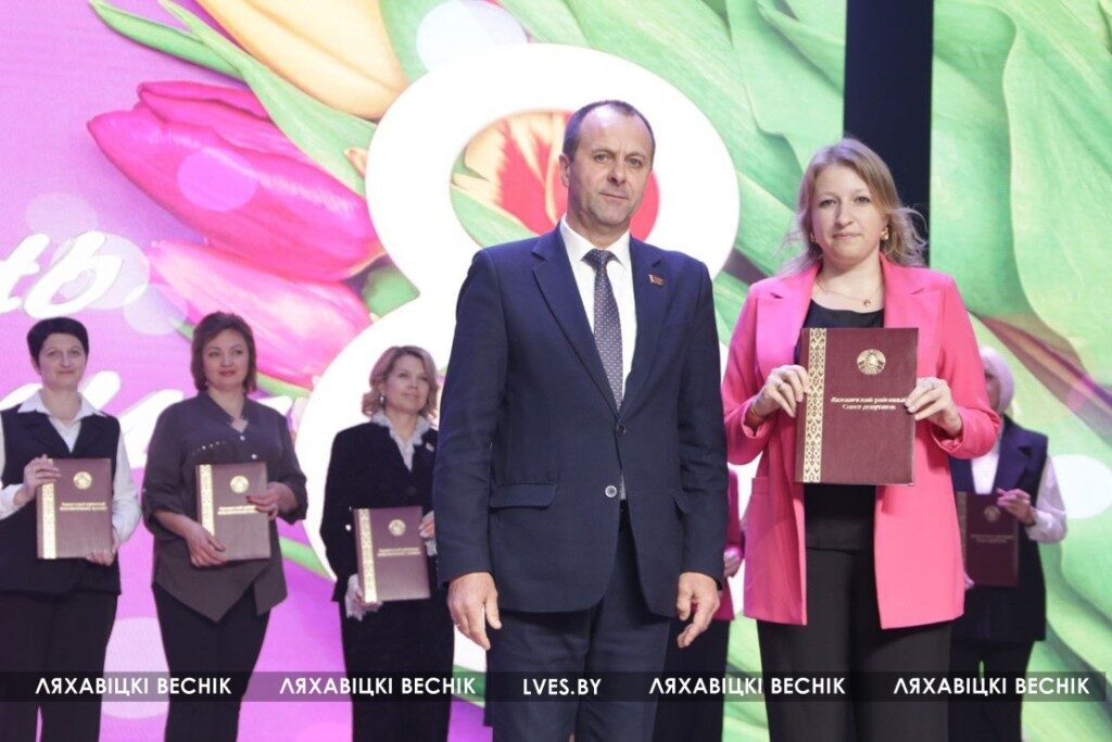 Председатель Ляховичского райсовета депутатов Юрий Черенкевич поздравил присутствующих с Днём женщин и адресовал им тёплые пожелания, вручил Почётные грамоты и Благодарственные письма райисполкома и райсовета депутатов.