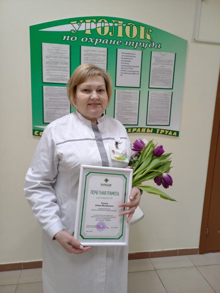Провизор-рецептар Ляховичской центральной районный аптеки Елена Русина награждена Почетной грамотой Брестского РУП «Фармация» за многолетний, добросовестный труд в деле лекарственного обеспечения населения и в связи с праздником Днём женщин.