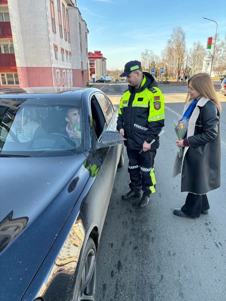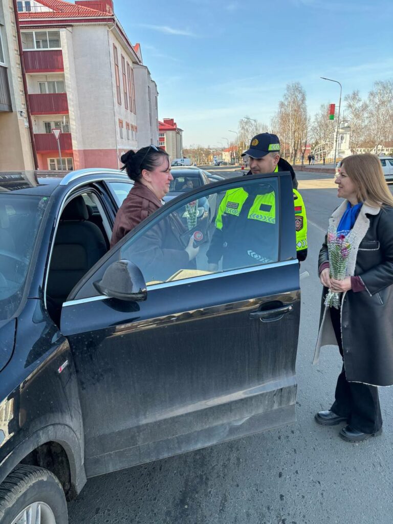 Сотрудники ОГАИ Ляховичского РОВД совместно с районной организацией Белорусского союза женщин поздравляли водителей