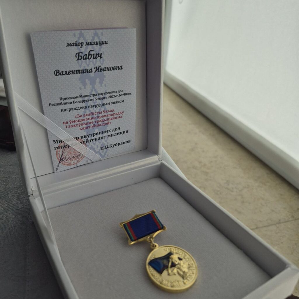 В объявленный Главой государства Год белорусской женщины, по инициативе Министра внутренних дел для многодетных матерей учрежден новый нагрудный знак МВД «За асабiсты ўклад ва ўмацаванне правапарадку i захоўванне традыцыйных каштоўнасцей». Нагрудный знак МВД Валентине Бабич вручил Министр внутренних дел Иван Кубраков.