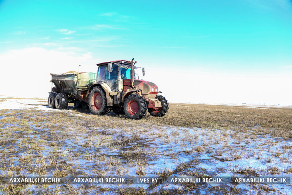 Снегу, якога сёлетняй зімой здарылася, як ніколі, шмат, у палях ужо амаль не засталося. Дзякуючы маючым месца лёгкім начным мінусам глеба ўсё яшчэ здольна трымаць сельскагаспадарчую тэхніку без крытычных для сябе пашкоджанняў. Чым і карыстаюцца працаўнікі сельскай гаспадаркі. Імкнуцца паставіць сабе на карысць літаральна кожную прыдатную для выхаду на ранневеснавое поле часіну. Калі не ўяўляецца магчымым працаваць цэлы дзень, не грэбуюць, напрыклад, выхадам у поле толькі ў першую яго палову. Сітуацыю дыктуе момант: знясіленым нядаўнімі маразамі азімым пасевам і плошчам шматгадовых травяных угоддзяў патрабуецца рэабілітацыйная падтрымка. Прасцей кажучы, мінеральная падкормка для ўдалага вегетацыйнага старту і як мага больш высокага ўраджайнага фінішу.