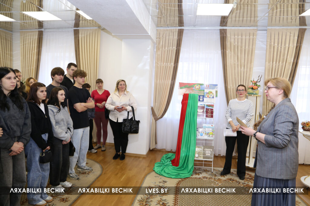 Заведующий сектором информационно-библиографической работы Ляховичской центральной районной библиотеки имени Я.Купалы Ионесса Татаринович презентовала тематическую выставку, посвященную Дню Конституции Республики Беларусь.
