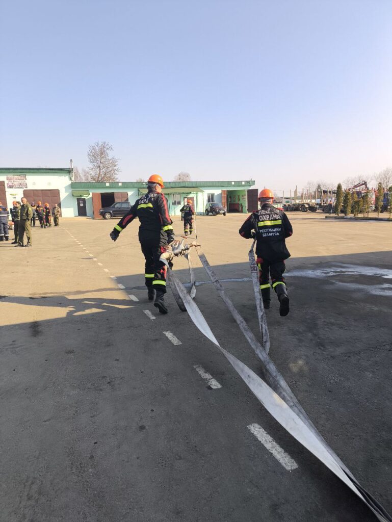 Далее — проверка техники и оборудования ППИ и ПХС подразделений с тренировочным развертыванием пожарных рукавов.