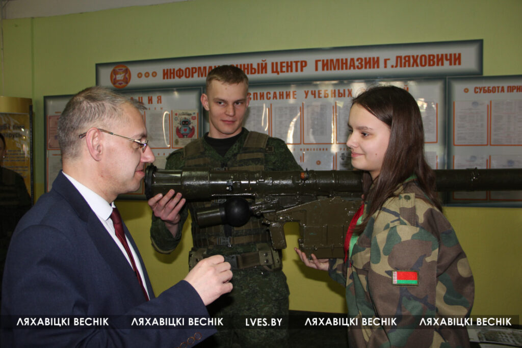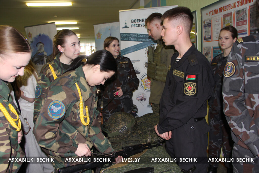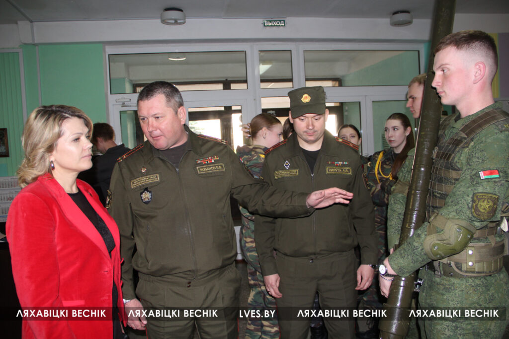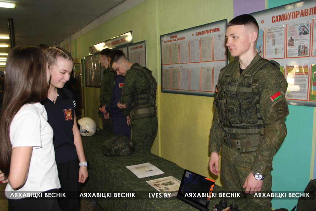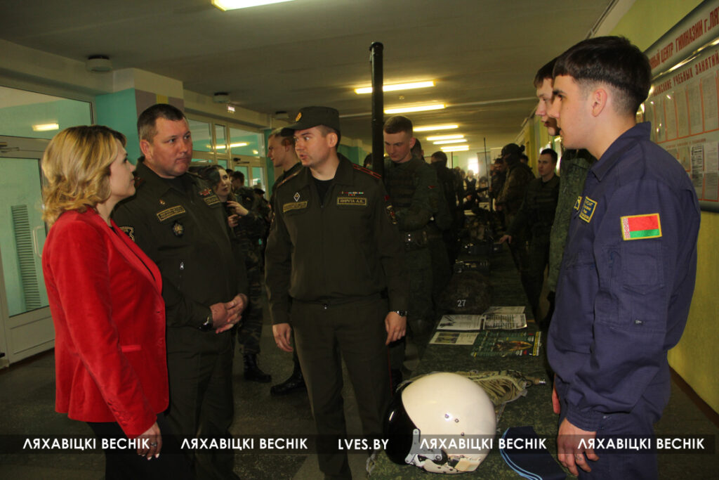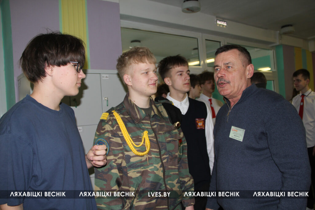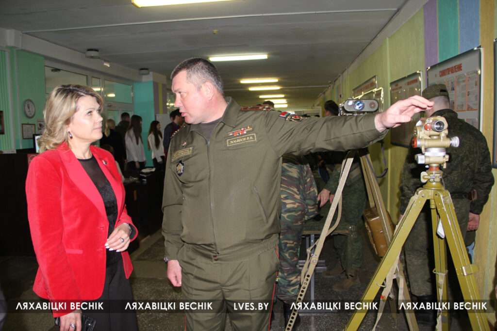 У учащихся была возможность пообщаться с начальником факультета ракетных войск и артиллерии и ракетно-артиллерийского вооружения полковником Вадимом Лобановым и начальником отдела по образованию райисполкома Марией Сороковик .