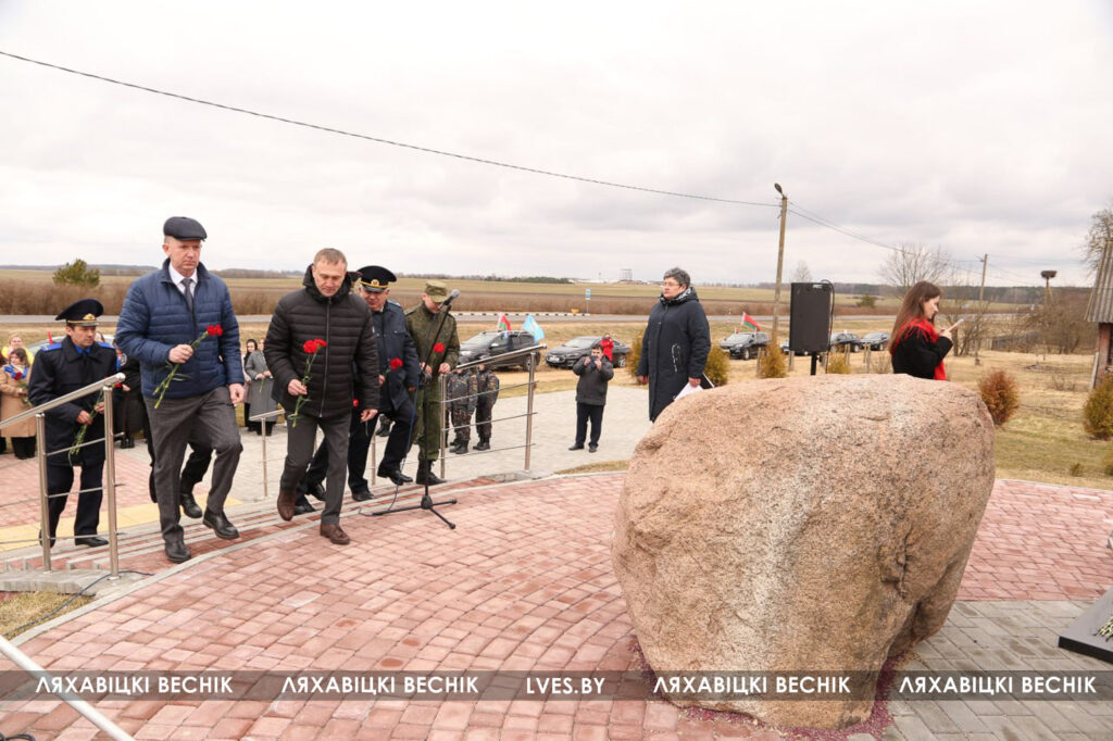 В Мариново при участии руководства района и правоохранительных органов, военкомата, депутата Палаты представителей Национального собрания Республики Беларусь Георгия Хлебовича, воспитанников военно-патриотического клуба «Фортеция» прошёл митинг у памятного знака.