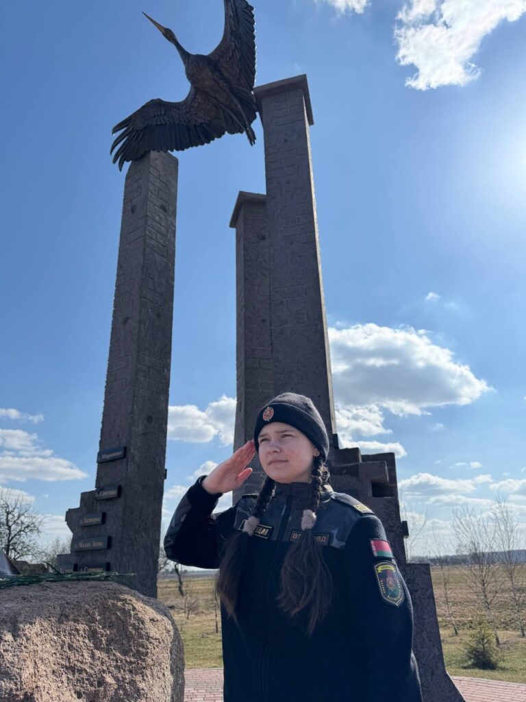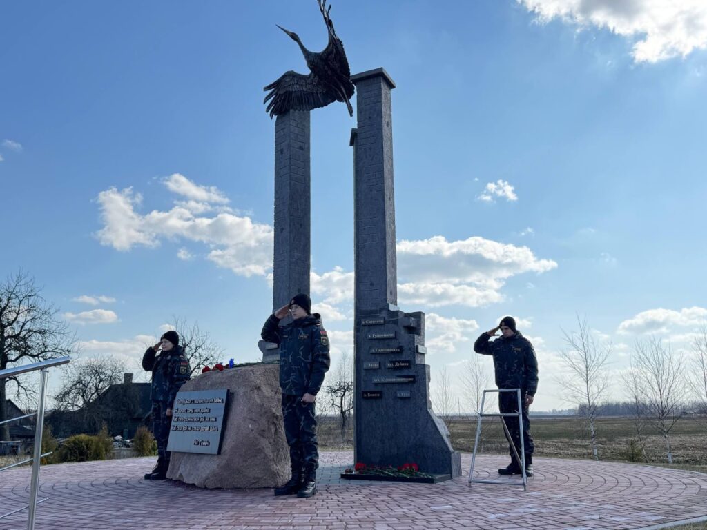 На вахту памяти у знака сожжённым во время Великой Отечественной войны деревням Ляховичского района заступили воспитанники ВПК «Фортеция»