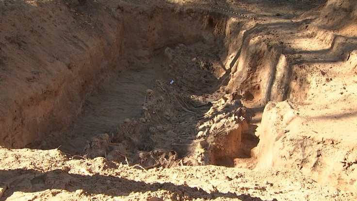 «В ходе экспертных исследований установлено в ряде случаев, что детям и женщинам проламывали головы каким-то твердым металлическим предметом. Часто закапывали живьем, затем утрамбовывали могилы и забрасывали еще гранатами, чтобы могилы с расстрелянными, убитыми жертвами трамбовались».