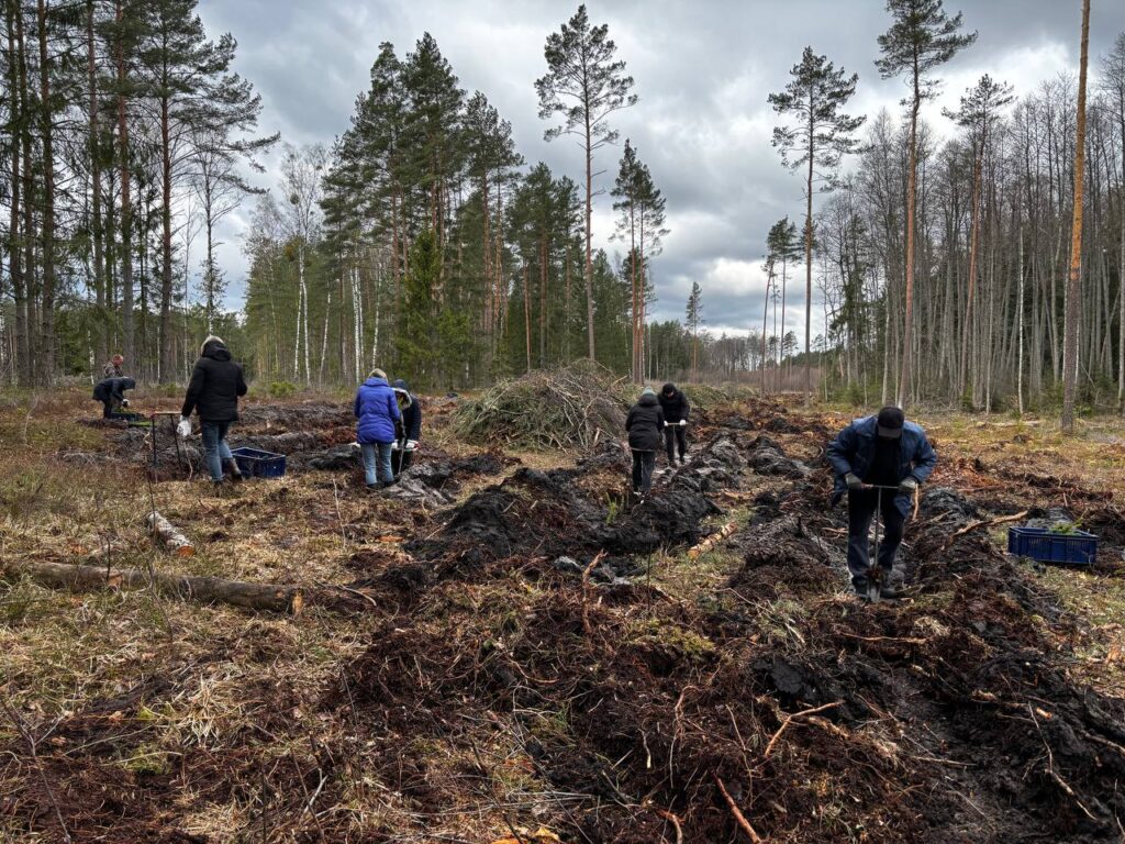 Работники райпо во главе со своим руководителем дополнили лес в Куршиновичском лесничестве на площади 1,5 гектара.