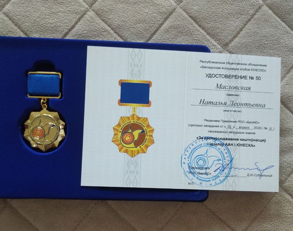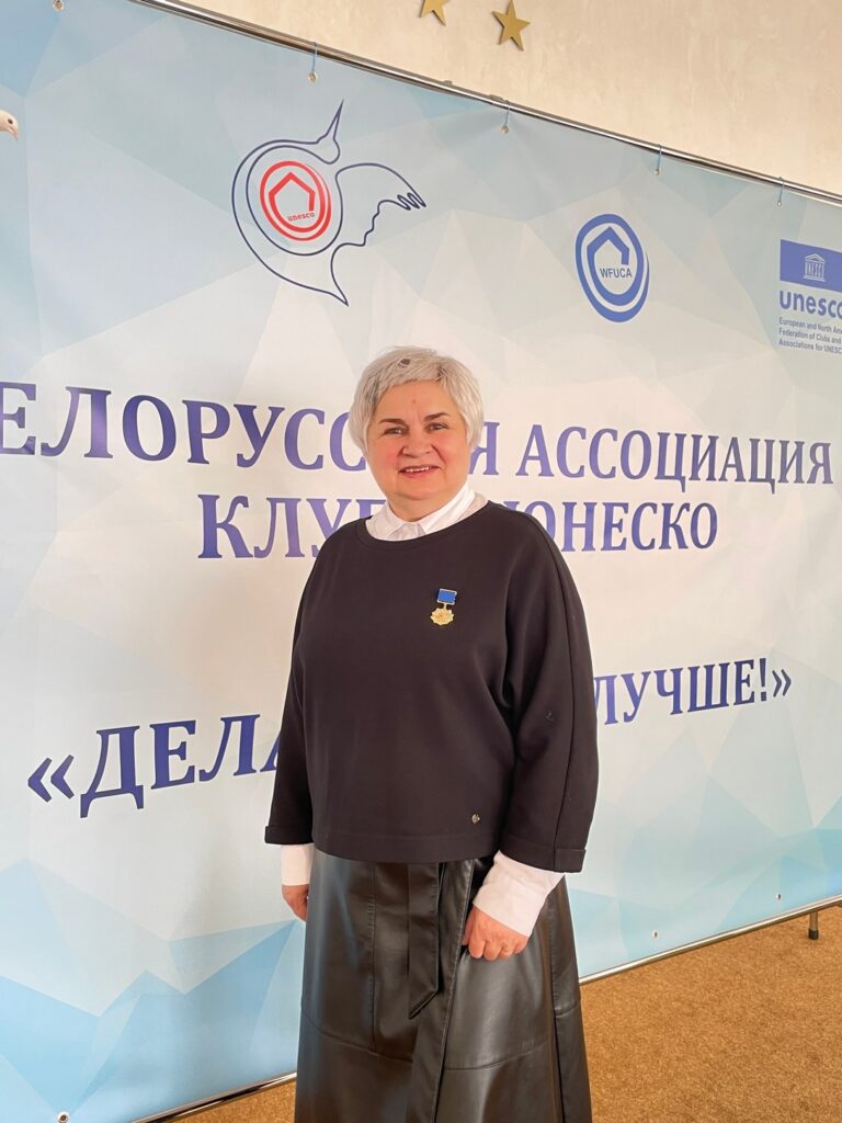 Нагрудным знаком ЮНЕСКО отмечена куратор клуба ЮНЕСКО «Заранка» директор ЦКРОиР г. Ляховичи