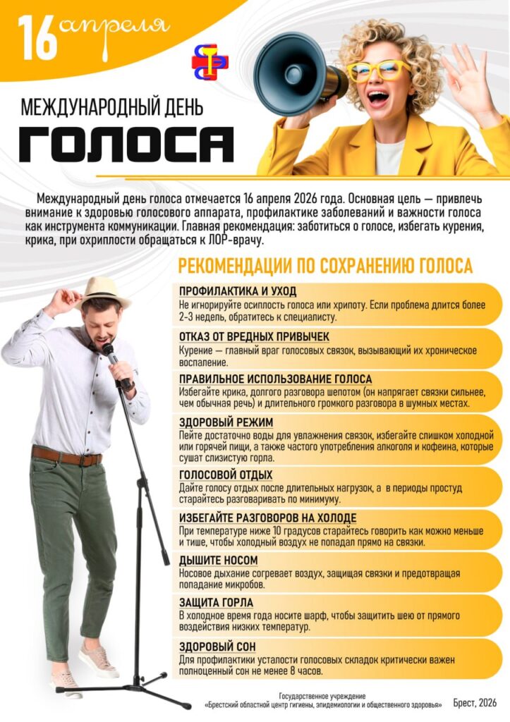 В этом году 16 апреля отмечается Международный день голоса. Основная цель — привлечь внимание к здоровью голосового аппарата, профилактике заболеваний и важности голоса как инструмента коммуникации.