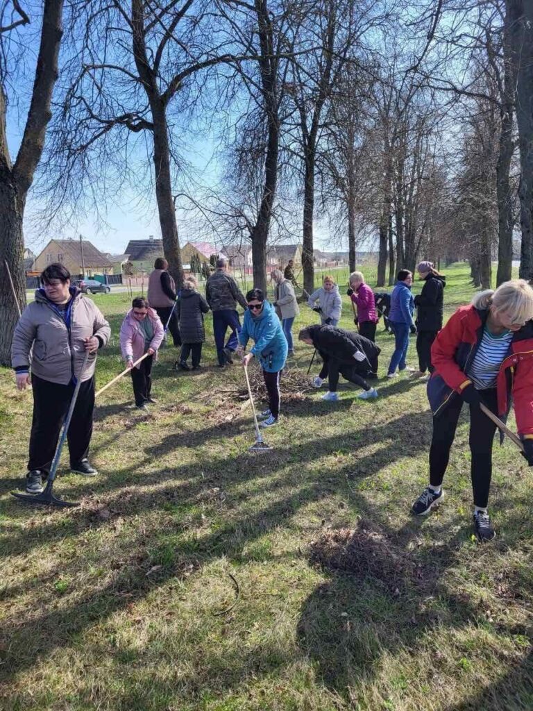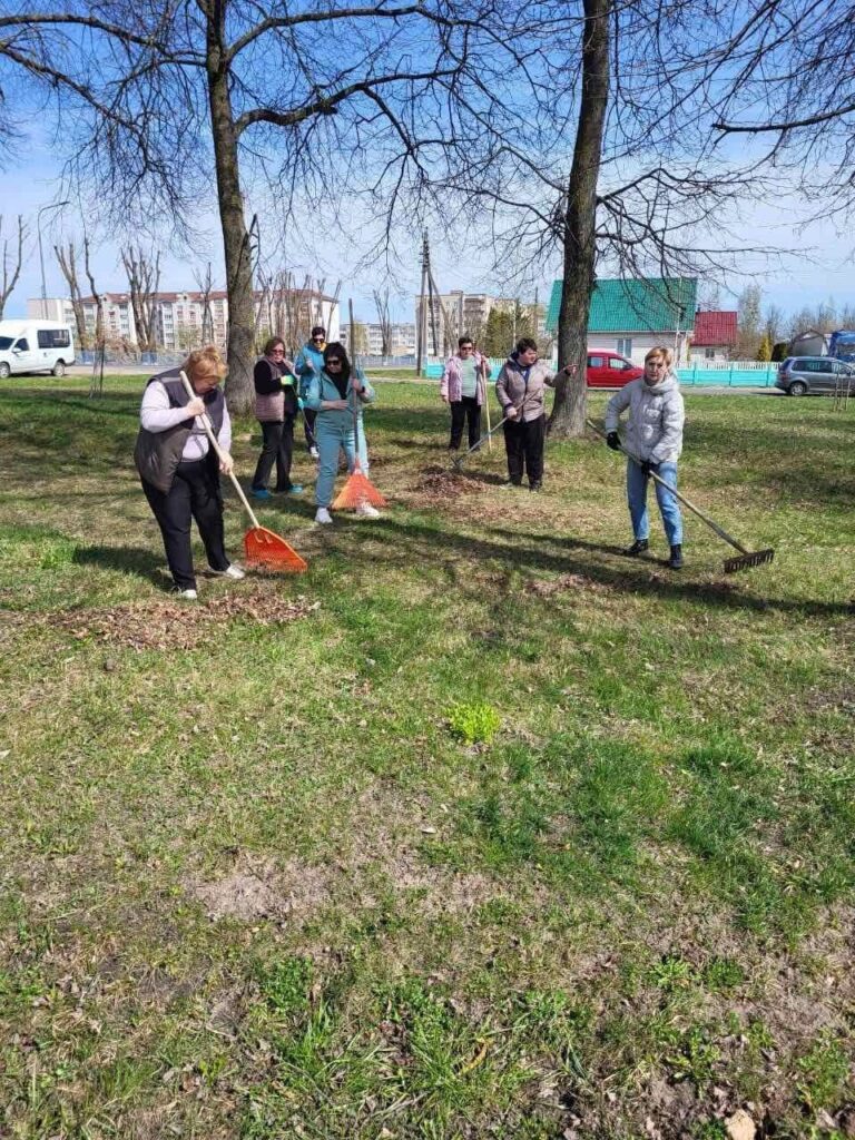 ▫️Работники Ляховичской райбольницы потрудились и на благоустройстве паркового ансамбля в Грушевке.