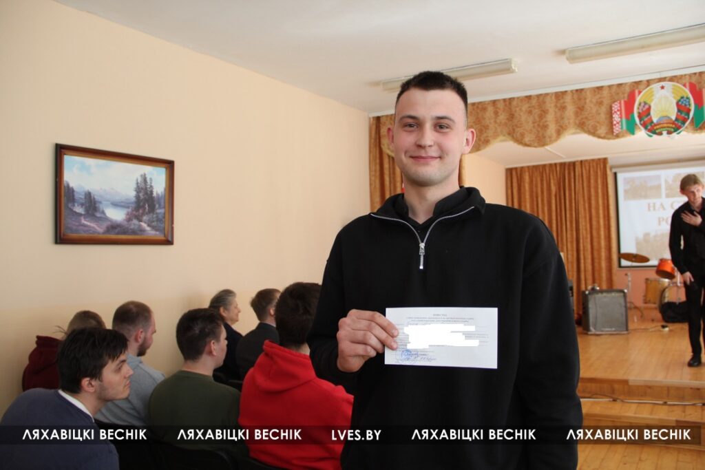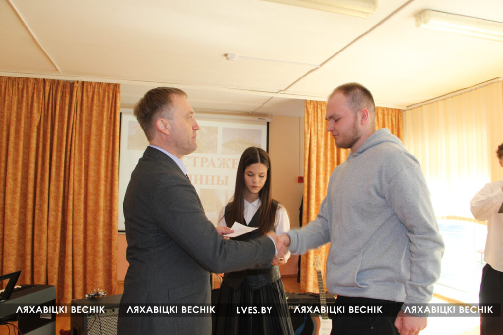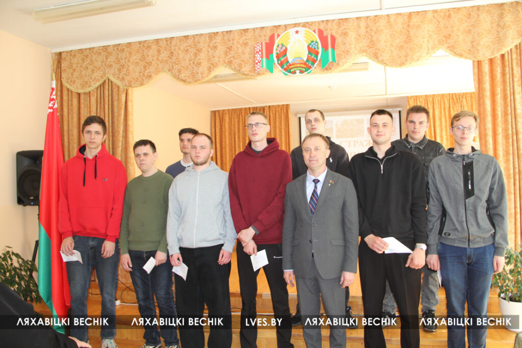 В адрес будущих защитников Отечества звучали слова напутствия от заместителя председателя райисполкома, председателя районного отделения Белорусской партии «Белая Русь» Олега Третьяка. Повестки для прохождения срочной военной службы с председателем призывной комиссии Олегом Третьяком вручил и председатель районной организации Белорусского союза ветеранов войны в Афганистане Геннадий Лойко.