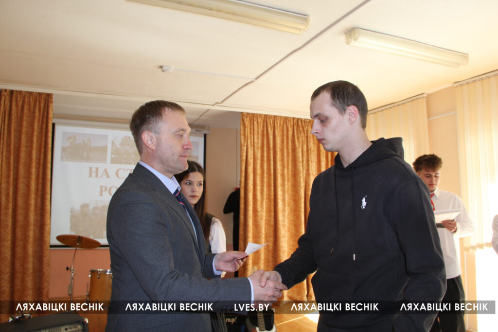 Сегодня День призывника прошёл на базе СШ №2. В весенний призыв из Ляховичского района в ряды Вооруженных Сил, войск и воинских формирований отправятся около 45 человек, из них около десяти человек – на службу по контракту, а также на службу в резерве.