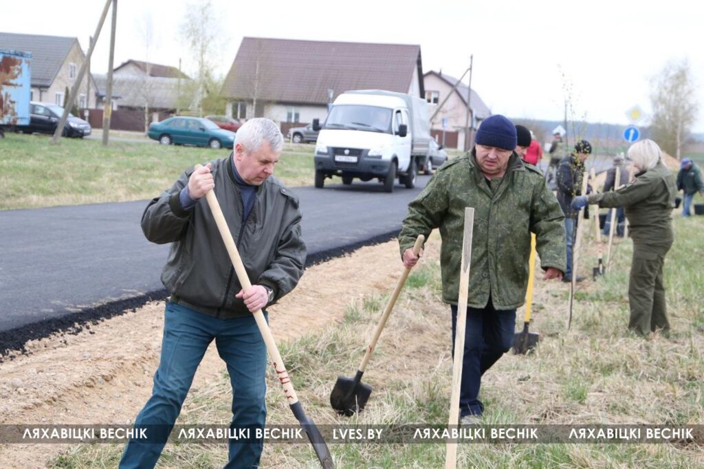 Среди участников трудовой акции — председатель Ляховичского райисполкома Николай Мороз и прокурор Ляховичского района Игорь Полыко.