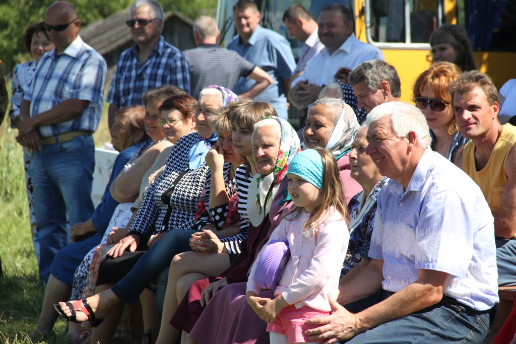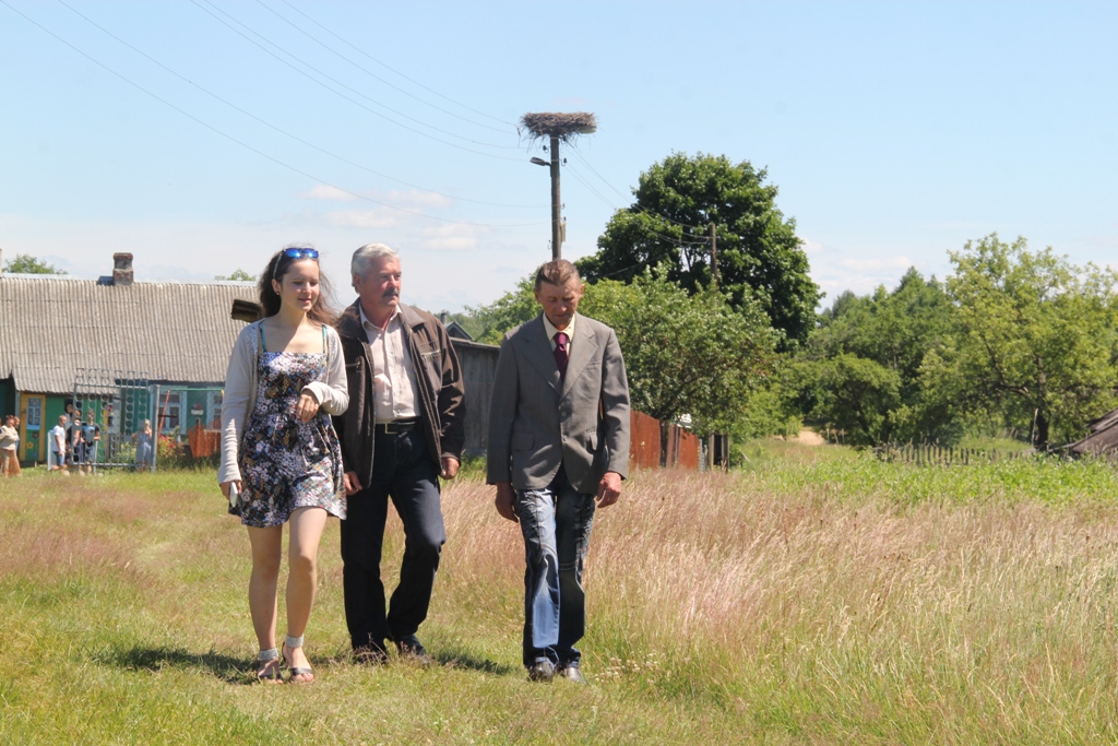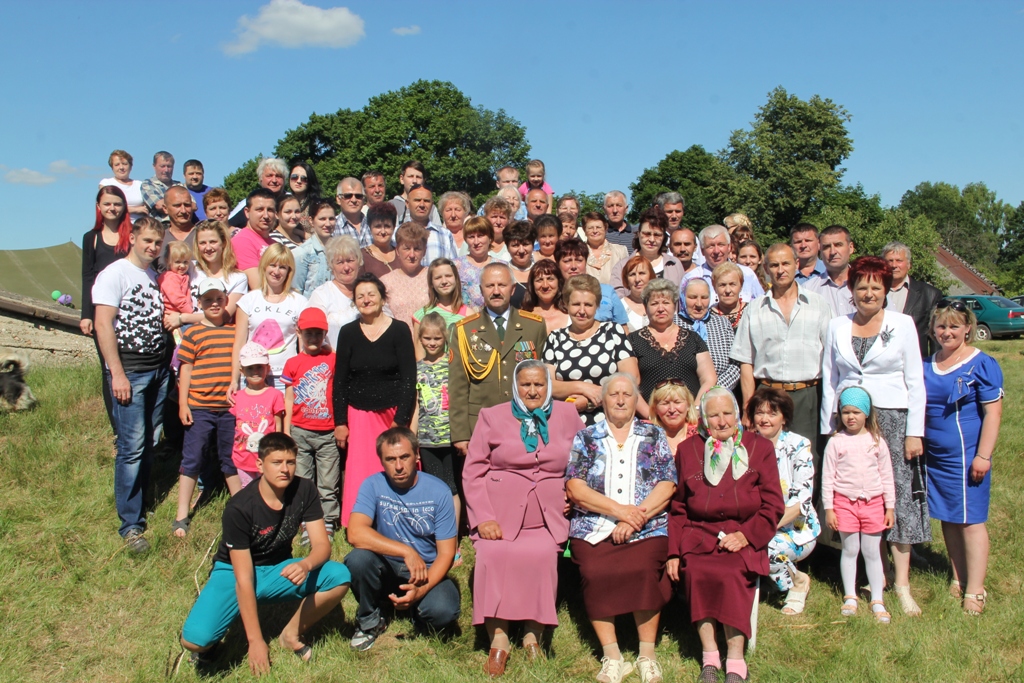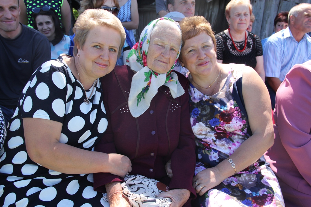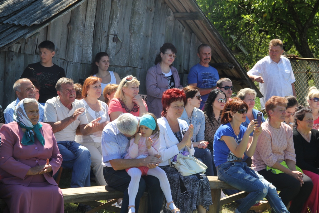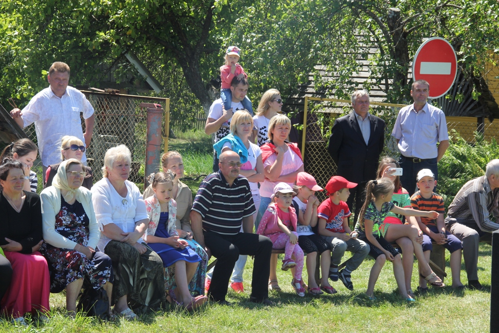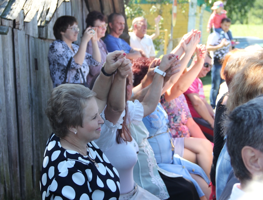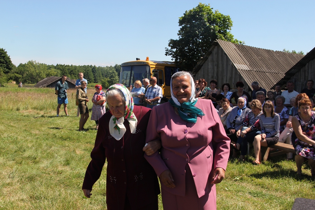 А народу ў цэнтры вёскі ўсё прыбаўлялася. То тут, то там можна было ўбачыць як абдымаюцца людзі пры сустрэчы, пачуць: “А мая ж ты даражэнькая, за столькі гадоў зусім не памянялася”, “Колькі ж мы не бачыліся”, “Няўжо не пазнала? А на танцы разам бегалі!..”