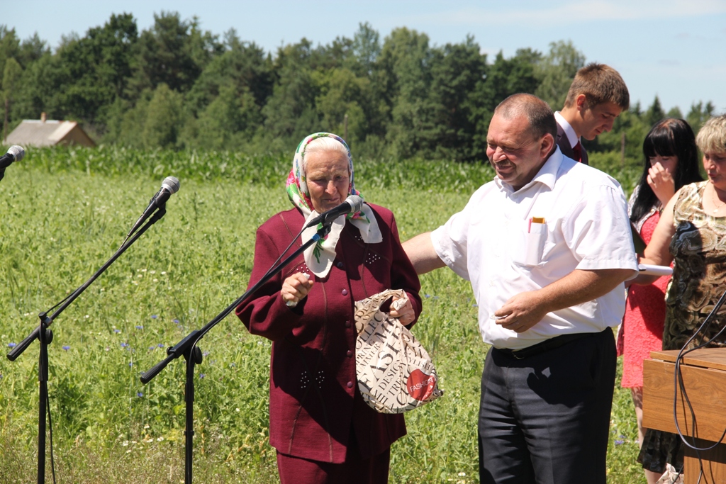 Пад апладысменты землякоў на сцэну паднялася старэйшая жыхарка вёскі – 89-гадовая Лідзія Кабушка. Хоць па пашпарце амаль дзевяць дзясяткаў жанчыне, па знешнім выглядзе і настроі не скажаш, што яна ўладальніца такога багацця. Энергіі, актыўнасці, аптымізму Лідзіі Юльянаўны пазайздросцяць некаторыя маладыя. Атрымліваючы падарунак, яна прызналася ў любві да сваёй вёскі і пажадала ўсім такога ж моцнага, як у самой, здароўя.