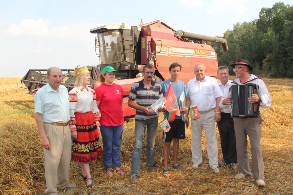 З першай сёлета “сямейнай” тысячай хлебаробаў павіншаваў старшыня райвыканкама Вячаслаў Сельмановіч. Падзячныя пісьмы экіпажу і падарункі камбайнерам уручыў старшыня райкама прафсаюза работнікаў АПК Мікалай Вайцешык. Таксама былі сувеніры, вымпелы перадавікоў ад райкама ГА БРСМ і аддзела ідэалагічнай работы, культуры і па справах моладзі, канцэрт літаральна на некалькі хвілін ад артыстаў з ГДК – даўжэй нельга, хлеб чакаць не будзе.