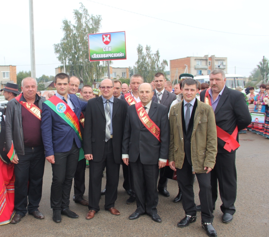 Перадавікі «Ляхавіцкага» на раённых «Дажынках». Побач з Аляксандрам Іванавічам — Іван Вітко і Аляксандр Шымкевіч.