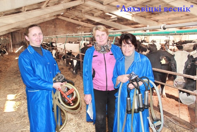 (дзве падменныя) штодзень цікавяцца вынікамі сваёй работы, спаборнічаюць. Калі ў Ірыны Мельнік, Наталлі Ажаль паказчыкі крыху большыя, то Валянціна Дзянішчык, Лілія Сельмановіч, Таццяна Зубік стараюцца не адставаць. У ліку лепшых дояраў і жывёлаводаў браты Адуевы. Даражаць сваёй работай усе члены калектыву. Пяцёра жывёлаводаў забяспечваюць паўнацэннае кармленне статка, два слесары-аператары машыннага даення сочаць за чысцінёй і спраўнасцю малакаправода, яшчэ два слесары адказваюць за захаванне належнага санітарнага стану ў памяшканнях, чатыры цялятніцы гадуюць маладняк.