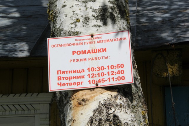 ішыню населенага пункта парушае сігнал – прыехаў магазін на колах. Падцягваюцца да яго і дачнікі, якіх у Рамашках некалькі. Вадзіцеля і прадаўца ў адной асобе Андрэя Савву мясцовыя жыхары сустракаюць як роднага. Адзначаюць, што вельмі задаволены яго работай: дапаможа выбраць прадукты, пацікавіцца справамі, ветлівы, далікатны.