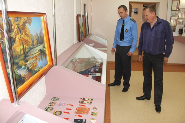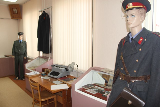 Ёсць тут міліцэйская форма савецкіх часоў з усёй амуніцыяй: скураным планшэтам, кабурой, партупеяй, форма супрацоўнікаў праваахоўных органаў пачатку дзевяностых гадоў мінулага стагоддзя. Святочны пінжак з мноствам медалёў у музей перадалі родныя былога супрацоўніка міліцыі ветэрана Вялікай Айчыннай вайны Уладзіміра Пархомчыка. У інтэр’еры музейнага пакоя – зацёрты стол, друкавальная машынка.
