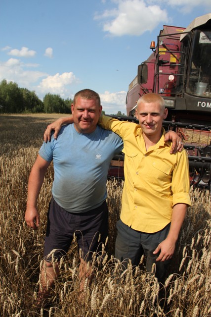 Тут сфарміравалі 2 збожжаўборачныя звяны па 7 агрэгатаў у кожным – раздзялілі па магутнасці тэхнікі. Кожны экіпаж – вопытныя механізатары. Узяць да прыкладу дынастыю Дзядовічаў, якія вывелі ў поле 3 камбайны: адзін экіпаж узначальвае бацька Анатолій Уладзіміравіч, два другіх – сыны Міхаіл і Аляксандр. Выдатна працуюць, з почыркам, што склаўся гадамі, – адказна, старанна, са своеасаблівым хлебаробскім гонарам. Бацька задаволены хлопцамі, хоць і не можа “дагнаць” іх (яго вынік пакуль восьмы, а сыны сярод перадавікоў).