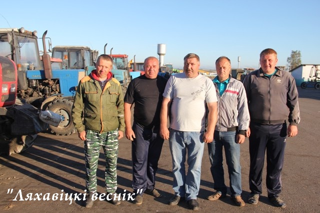 Аператары сушыльнай гаспадаркі Аляксандр Ходар, Міхаіл Грыкель, Анатолій Герасімовіч, Леанід Юнік, вадзіцель Сяргей Хлапянік.