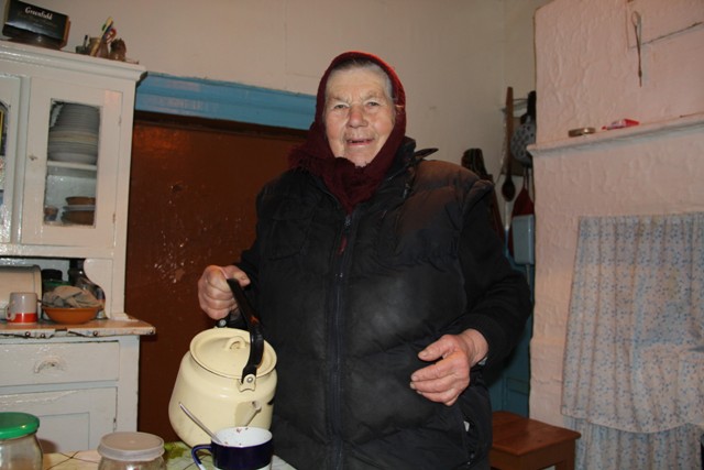 – Усё тут зроблена сваімі рукамі, здабыта сваёй працай, таму, відаць, і не адпускае, – гаворыць Алена Іосіфаўна. – Некалі ў 17 гадоў выйшла замуж, пайшла працаваць на ферму даяркай, разам з мужам і хату будавалі, і дзяцей вучылі. Хоць цяжка было, але адчувалі сябе шчаслівымі. А сёння што трэба? Толькі перад вашым прыходам фельчар наведвалася, тройчы на тыдзень аўталаўка прыязджае, калі што – тэлефон пад рукой, старасту званю. Як бы там ні было, у сваёй хаце і сцены дапамагаюць…
