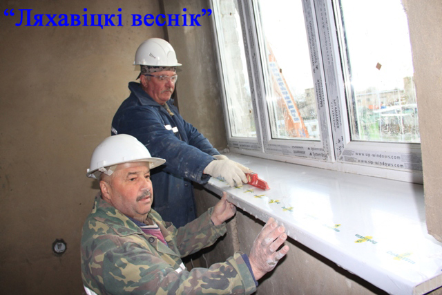 У дзень, калі будаўнічую пляцоўку наведалі карэспандэнты ”ЛВ”, работа на аб’екце кіпела. Напружанасць яе пульсу прагназавалася яшчэ на падыходзе. Краны цягнулі ў неба свае магутныя рукі. Аўтамабіль-міксер, тынковачная станцыя. Майстры-фасадчыкі ўжо шмат “прасунуліся” на ніве цеплавой рэабілітацыі дома. Работа вялася на кожным з паверхаў. Муляры, электрамантажнікі, бетоншчыкі, газаэлектразваршчыкі. Але найбольш аддзелачнікі: з 92 занятых на той момант на аб’екце рабочых і спецыялістаў больш як трэцюю частку складалі іменна яны.
