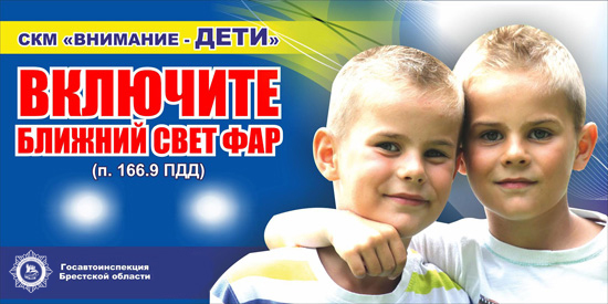 Напоминаем, что с 25 мая по 5 июня 2017 на территории республики ГАИ проводит СКМ «Внимание — дети!». В эти дни предусматривается обязательное движение транспортных средств в светлое время суток с включенными ближним светом фар или дневными ходовыми огнями, чтобы привлечь внимание детей и всех участников дорожного движения. Целью мероприятия является профилактика и предупреждение детского дорожно-транспортного травматизма.