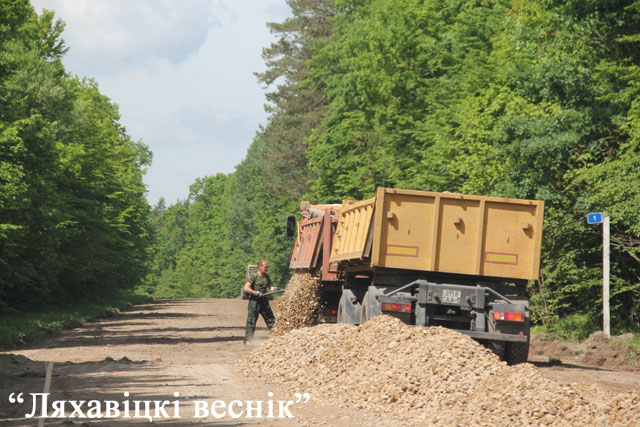 У чэрвені дарога з Альхоўцаў на Завінне стала будаўнічым аб’ектам: яе рыхтуюць для ўкладкі пакрыцця з эмульсійна-мінеральнай сумесі (на здымку). Завозіцца шчабёнка, якая тут жа трамбуецца і ўкатваецца. Працягласць дарогі – 5,67 кіламетра. Кошт аб’екта – 1 мільён 100 тысяч рублёў. Фінансаванне ідзе з абласнога бюджэту і за кошт субвенцый з рэспубліканскага дарожнага фонду. Працуюць на добраўпарадкаванні і рамонце прафесіяналы з ДРБУ-200. Плануецца, што ўжо ў лістападзе транспарт пойдзе па новенькай стужцы.Дарэчы, сёлета спраўджваецца яшчэ адна доўгачаканая падзея: райцэнтр і аграгарадок Падлессе цяпер звязвае дарога з сучасным пакрыццём. Кошт абноўкі – 1 мільён 280 тысяч рублёў. Сродкі выдаткоўваюцца з тых самых крыніц, што і на папярэдне ўзгаданы аб’ект.
